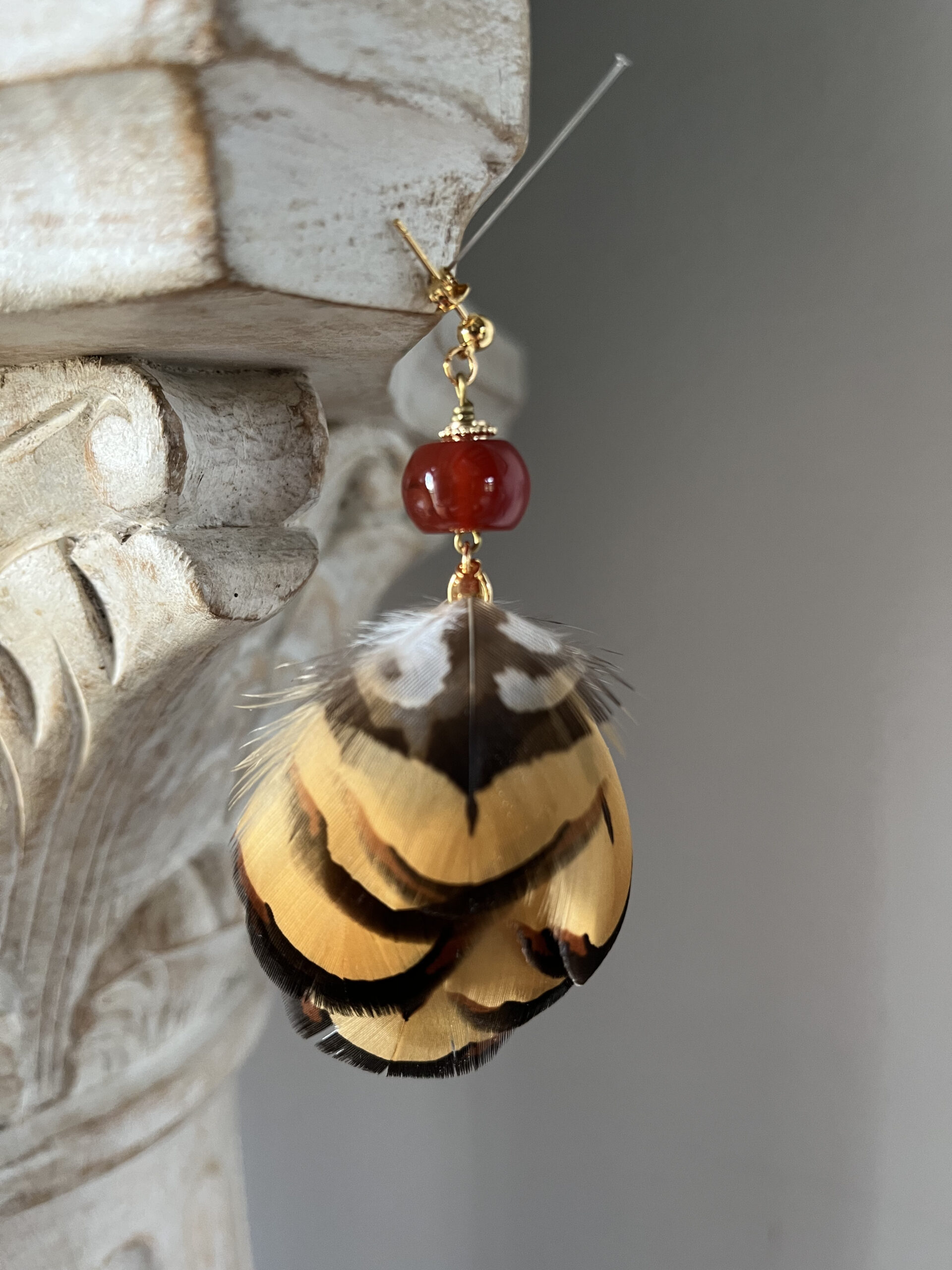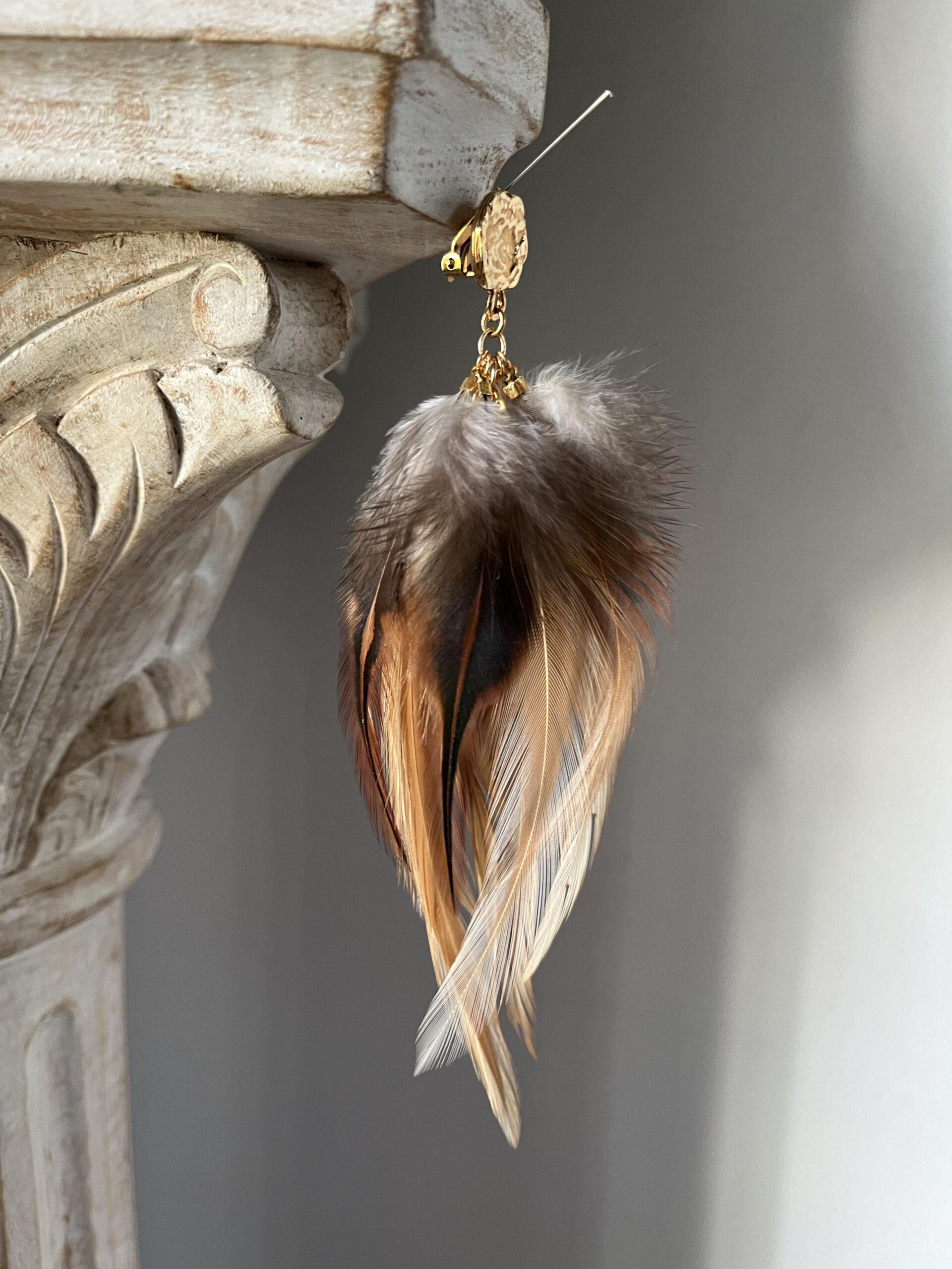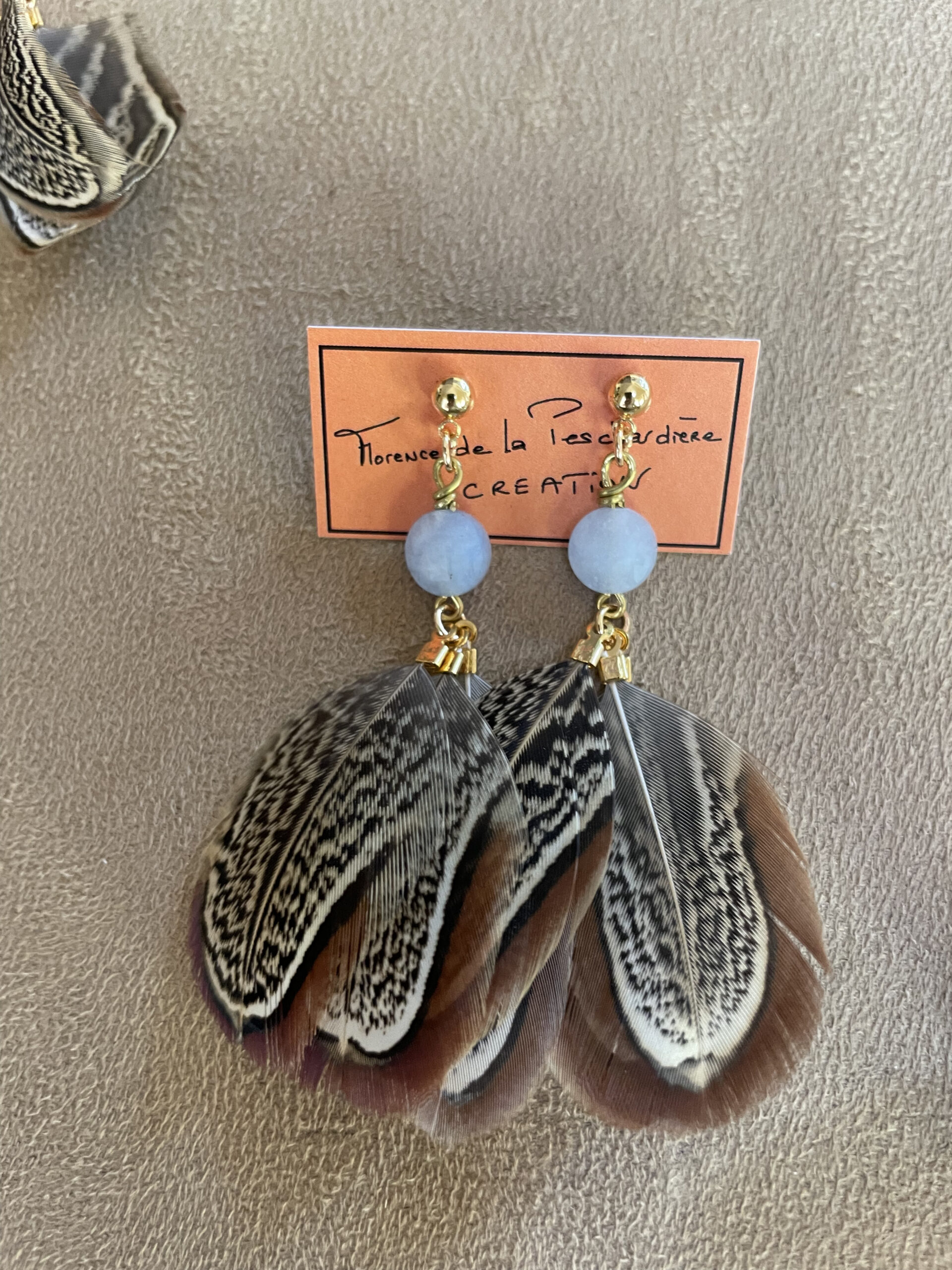 Des créations aériennes, délicates et vivantes, où la plume apporte mouvement et poésie au bijou.